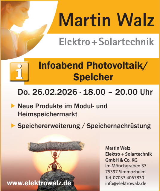 Heute wird die Firma Martin Walz, Elektro + Solartechnik GmbH & Co. KG in Simmozheim von den beiden Geschäftsführern Martin Walz und Silvio Ferreira geleitet.